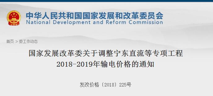 發(fā)改委:調(diào)整寧東直流等專(zhuān)項(xiàng)工程2018-2019年輸電價(jià)格
