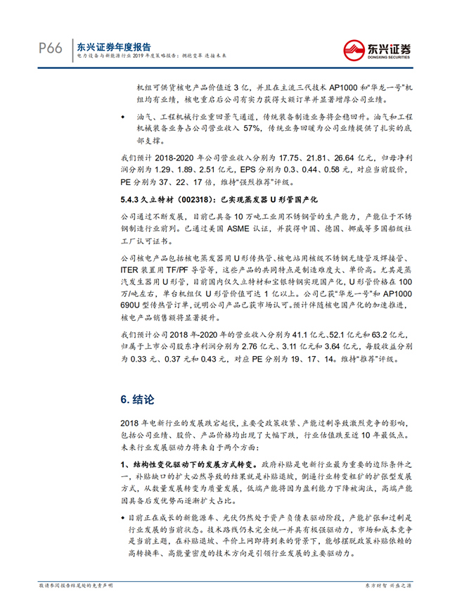 投資策略:展望2019年,電新行業(yè)仍具備成長性和投資機會。