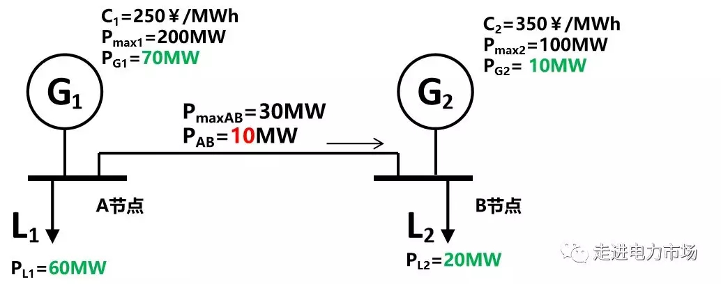 本節(jié)用一個兩節(jié)點(diǎn)系統(tǒng)的例子對不同情況下的結(jié)算情況進(jìn)行分析。