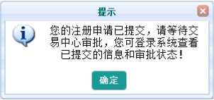 (三 ) 注冊信息提交后由交易中心進行審批, 審批通過后將生效納入交易平臺市場主體 , 注冊信息必須與提交的紙質版材料一致,否則將無法通過審批。