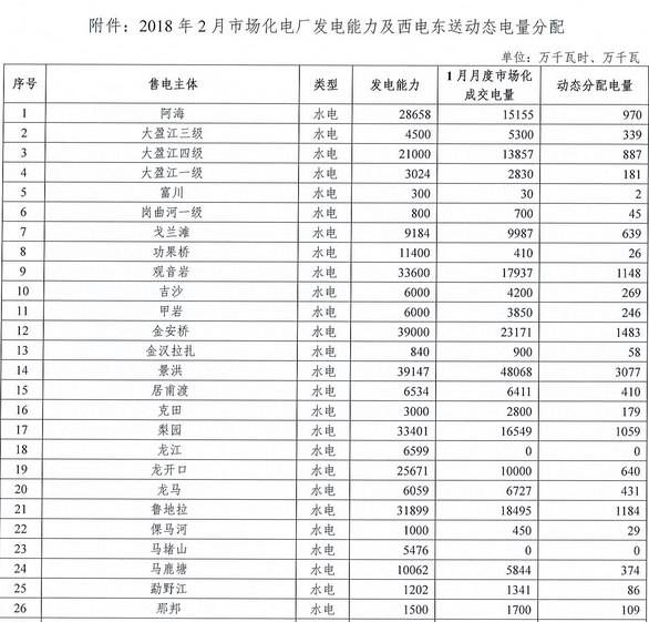 云南2018年2月電力市場化交易信息披露:2月份省內(nèi)市場可競價電量約58億千瓦時