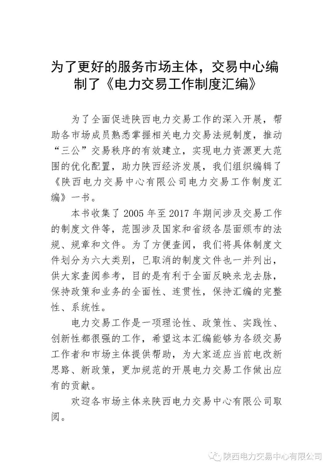 陜西為了更好的服務市場主體,交易中心編制了《電力交易工作制度匯編》