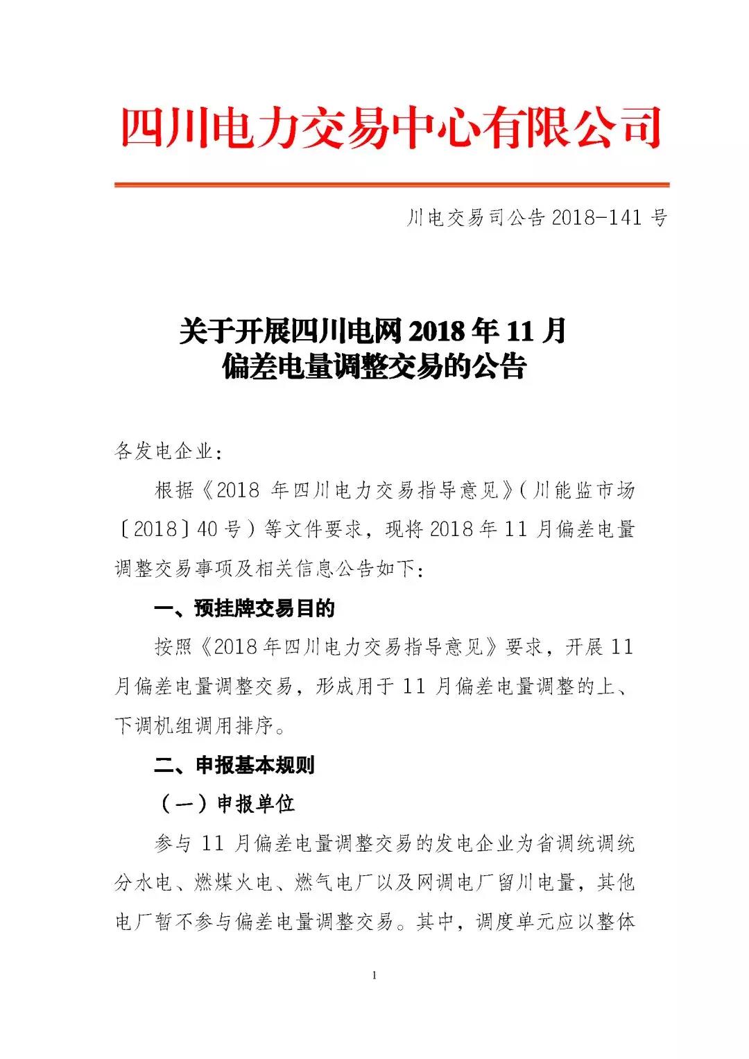 公告 | 關(guān)于開展四川電網(wǎng)2018年11月偏差電量調(diào)整交易的公告