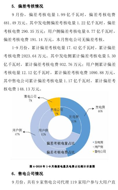 9月份,偏差考核電量1 99億千瓦時(shí),偏差考核電費(fèi)481 49萬(wàn)元。其中發(fā)電側(cè)偏差考核電量1 22億千瓦時(shí),偏差考核電費(fèi)290 35萬(wàn)元;用戶側(cè)偏差考核電量0 77億千瓦時(shí),偏差考核電費(fèi)191 14萬(wàn)元,本月售電公司無(wú)偏差考核。