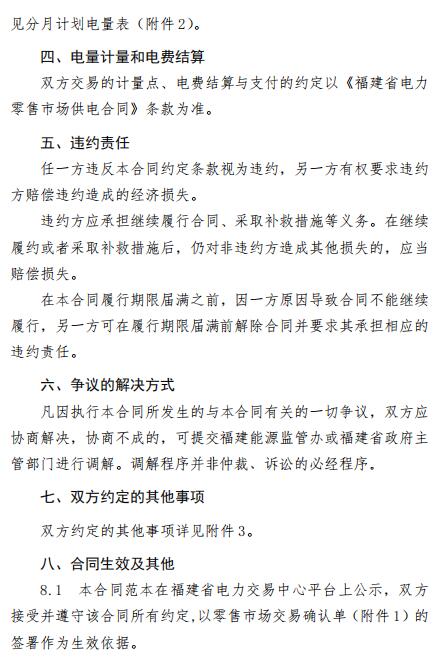 2.2 本方以福建省電力零售市場供電合同交易確認(rèn)單(附件 1,以下簡稱交易確認(rèn)單)的簽署作為對本合同的確認(rèn),接受并遵守本合同的所有約定。