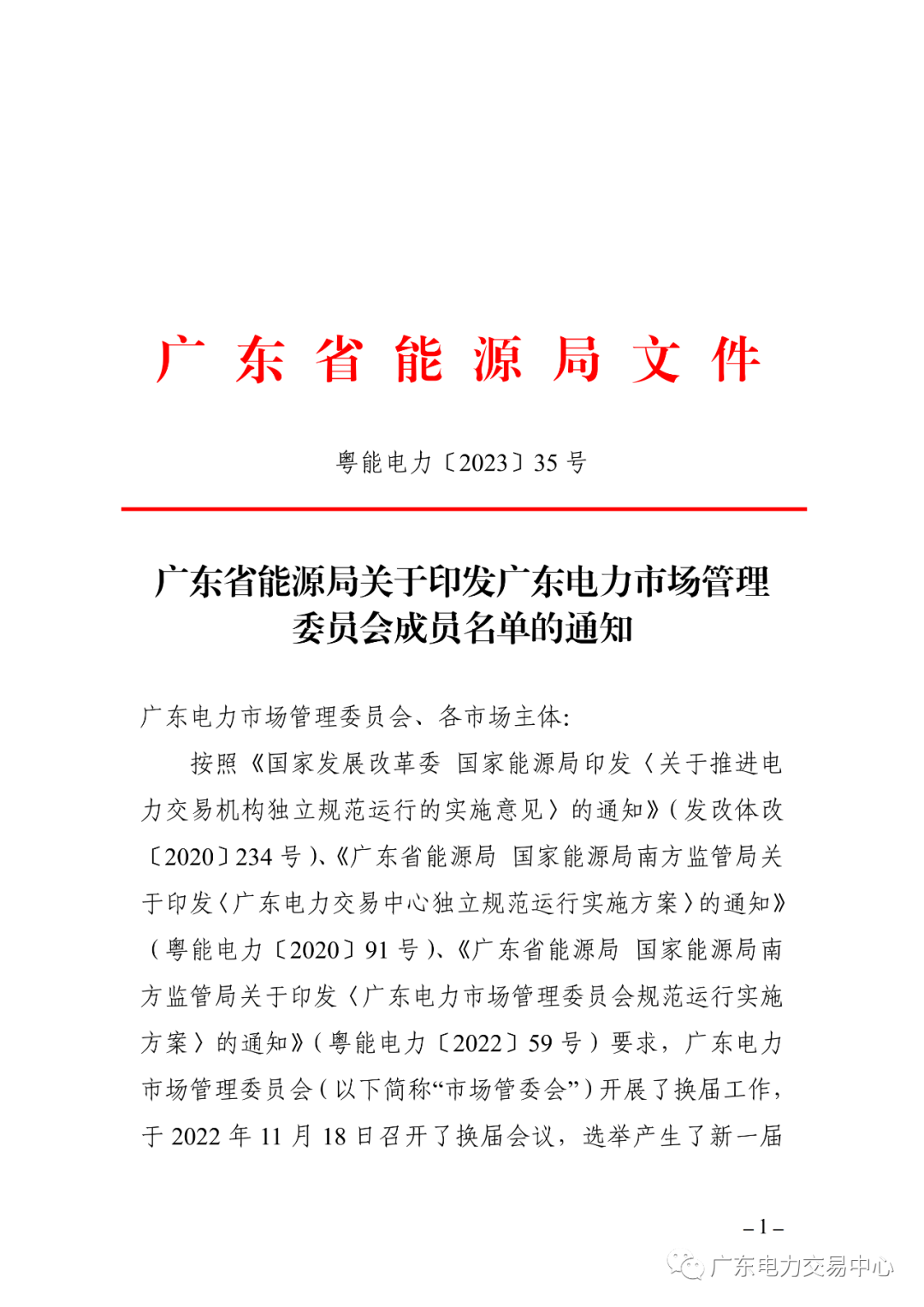 北極星售電網獲悉,日前廣東電力交易中心轉發(fā)《廣東省能源局關于印發(fā)廣東電力市場管理委員會成員名單的通知》。詳情如下:>