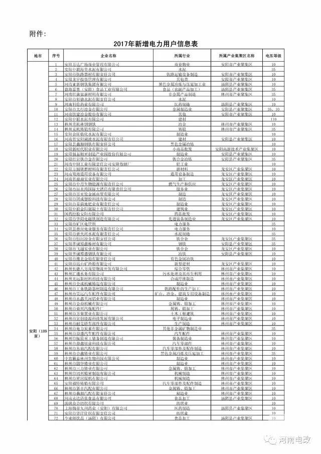 河南省2017年新增電力交易用戶名單公示根據(jù)省委省政府工作部署,按照省發(fā)改委要求,現(xiàn)將自愿申報(bào)參與我省2017年新增電力交易用戶名單予以公示。公示期為2017年4月11日至17日。對公示名單中不符合國家和我省產(chǎn)業(yè)、