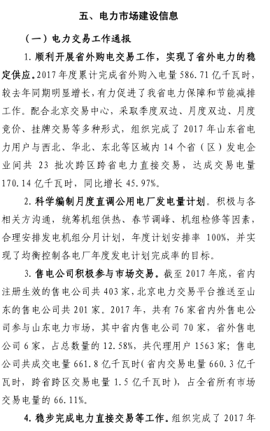 山東電網(wǎng)2017年度暨四季度電力市場交易信息報告:全社會用電量完成5430.16億千瓦時