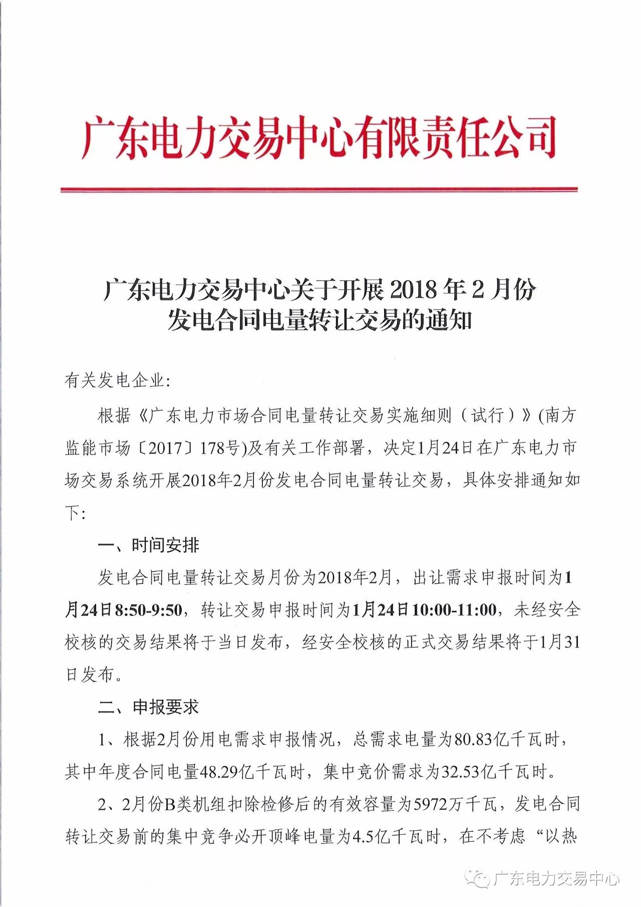 廣東電力交易中心發(fā)布了《關(guān)于開(kāi)展2018年2月份發(fā)電合同電量轉(zhuǎn)讓交易的通知》,根據(jù)2018年2月份發(fā)電合同電量轉(zhuǎn)讓交易時(shí)間安排,廣東電力交易