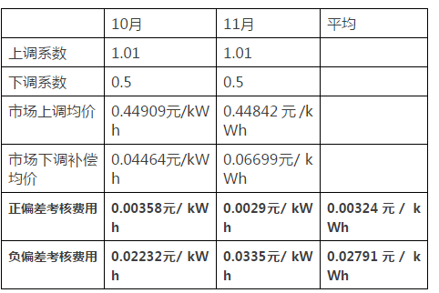 通過交易中心提供的結(jié)算數(shù)據(jù)和結(jié)算通知,將10月11月考核參數(shù)對比如下: