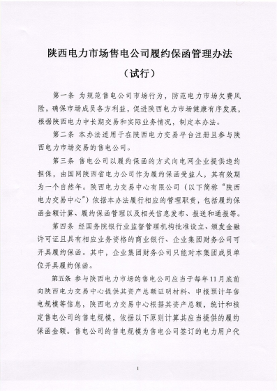 《陜西電力市場售電公司履約保函管理辦法(試行)》的通知