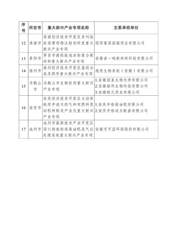 安徽省“三重一創(chuàng)”辦關(guān)于公布第三批省重大新興產(chǎn)業(yè)工程