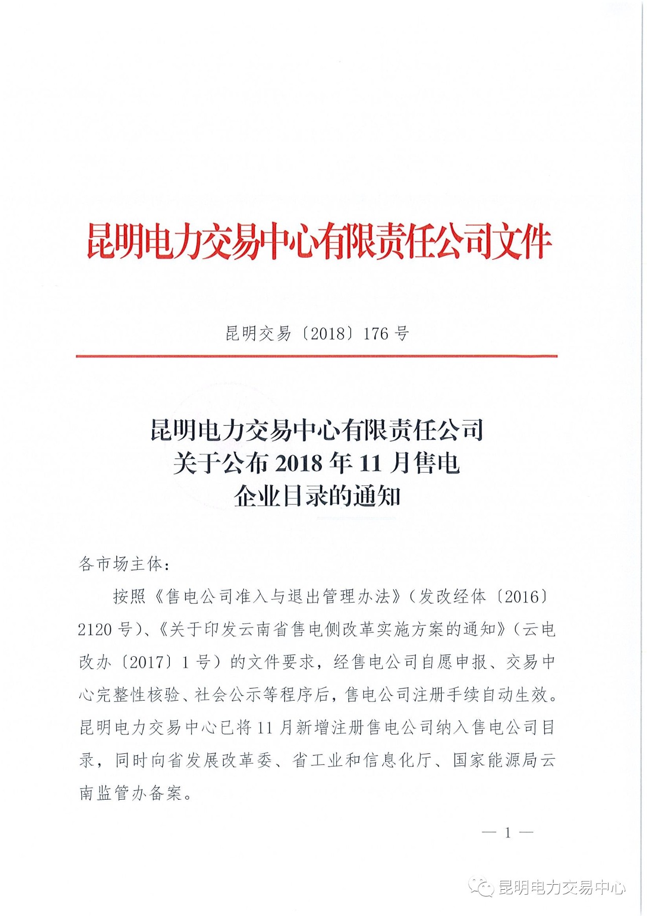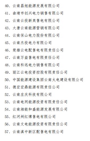 云南2018年11月售電企業(yè)目錄:57家售電公司已履行信用保證