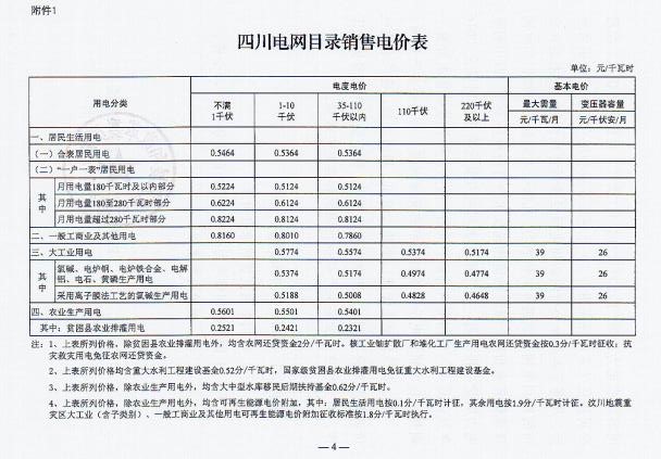 四川:降低目錄銷售電價合理調(diào)整電價結(jié)構(gòu)有關(guān)事項的通知