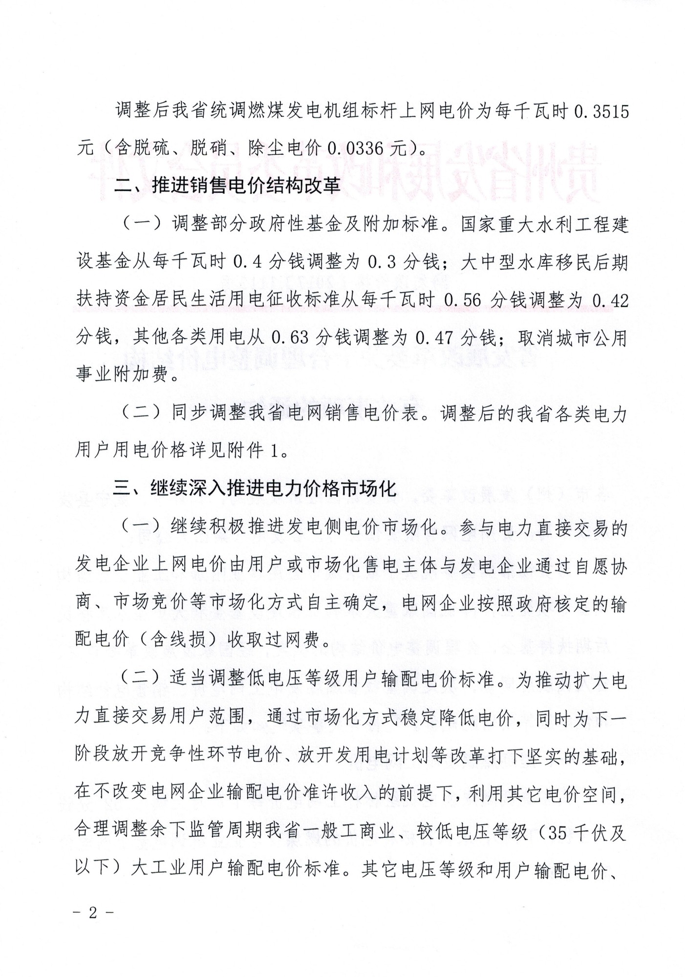 貴州:關(guān)于合理調(diào)整電價結(jié)構(gòu)有關(guān)事項的通知