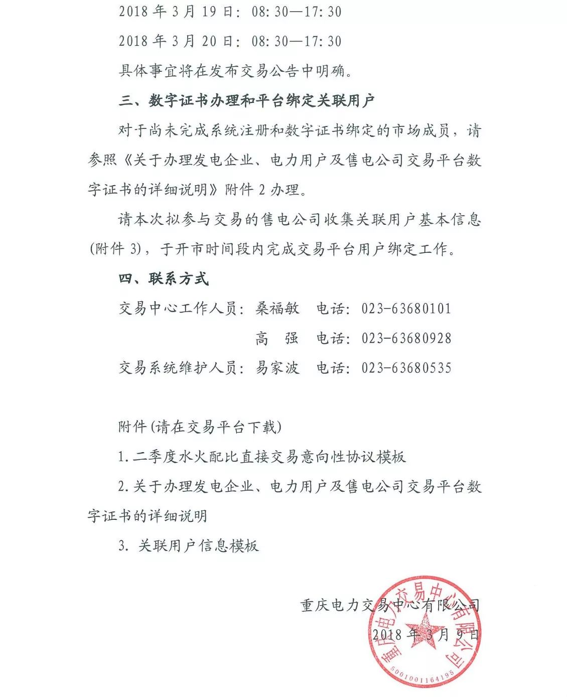 重慶電力交易中心日前發(fā)布了《關(guān)于開(kāi)展2018年第二季度直接交易有關(guān)準(zhǔn)備工作的通知》,于3月19日組織開(kāi)展2018年第二季度直接工作。