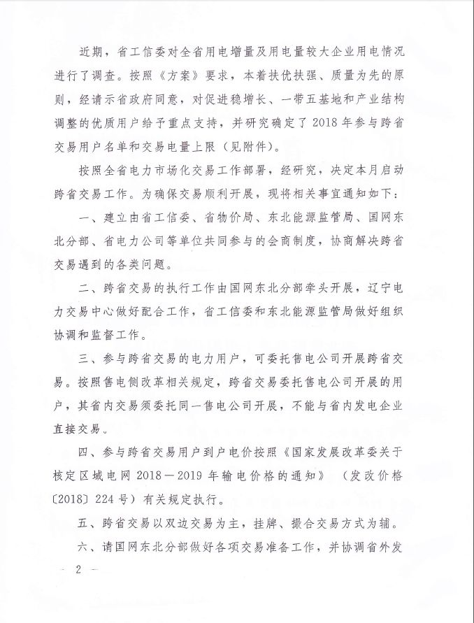 遼寧省工信委、物價局、國家能源局東北監(jiān)管局日前聯合發(fā)布了《關于組織開展2018年跨省電力市場化交易的通知》,通知中稱,將于3月啟動跨省