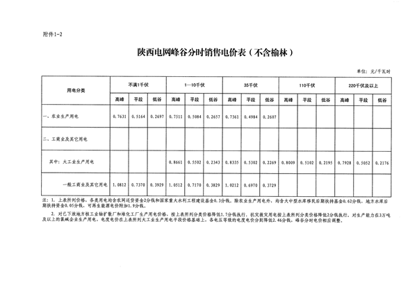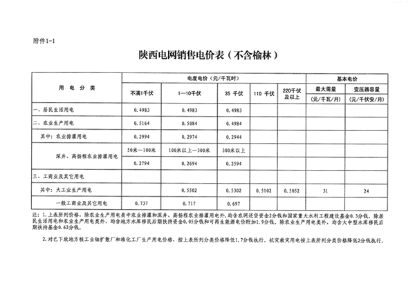 附件:1.陜西電網(wǎng)銷售電價(jià)表(不含榆林)