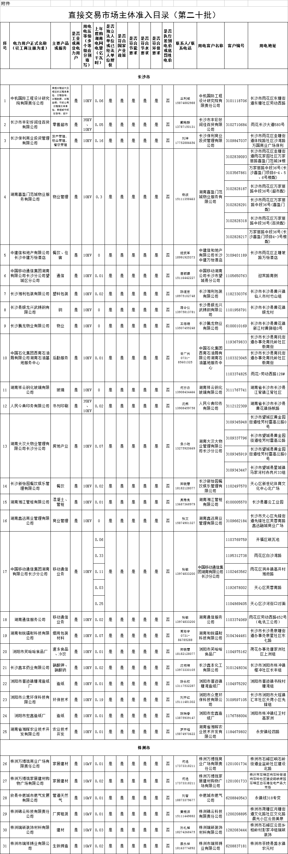 根據(jù)《湖南省經(jīng)濟(jì)和信息化委員會(huì)關(guān)于建立電力用戶與發(fā)電企業(yè)直接交易準(zhǔn)入目錄的通知》(湘經(jīng)信能源〔2016〕474號(hào))要求,按照《湖南省電力用戶與發(fā)電企業(yè)直接交易準(zhǔn)入管理辦法》規(guī)定的準(zhǔn)入條件,我委會(huì)同各市州經(jīng)信委組織對(duì)第二十批申請(qǐng)準(zhǔn)入市場(chǎng)主體進(jìn)行了資格審查,并按程序進(jìn)行了公示,現(xiàn)將本批次準(zhǔn)入市場(chǎng)主體名單予以公布。