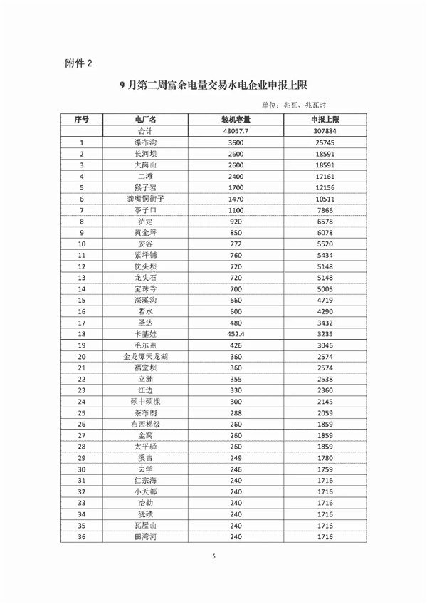 四川開展2018年9月第二周富余電量交易:申報電量2.57億千瓦時