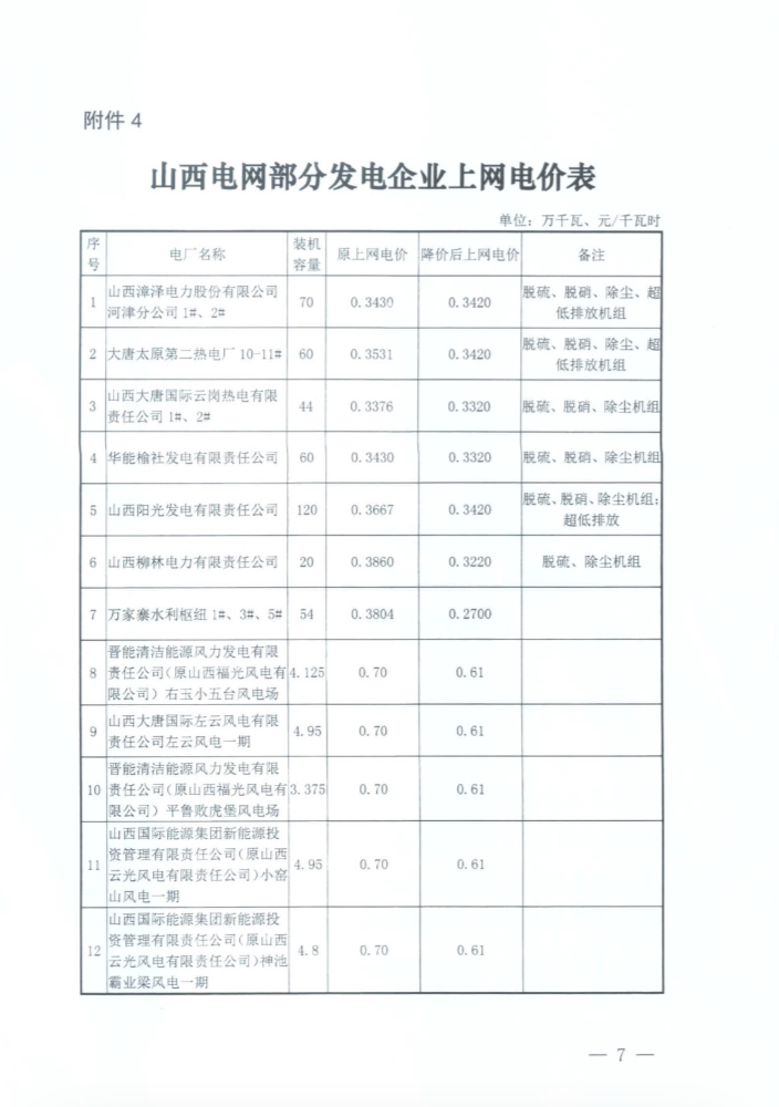 山西:降低部分風(fēng)電機(jī)組、水電機(jī)組、燃煤發(fā)電機(jī)組上網(wǎng)電價(jià)