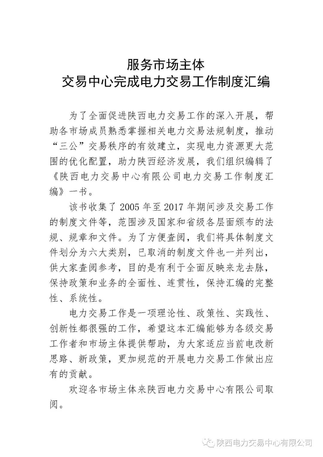 陜西服務(wù)市場主體交易中心完成電力交易工作制度匯編