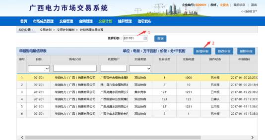 1、 進(jìn)入月度交易計(jì)劃申報(bào)界面,如下圖所示;