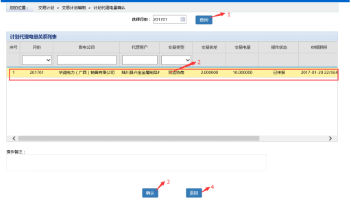 第五步:代理用戶確認(rèn)售電公司申報(bào)申報(bào)交易計(jì)劃