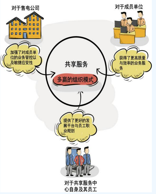 為此,共享服務是一種多贏的組織模式:對于售電公司,共享服務加強了對成員單位的業(yè)務管控以及敏捷應變性;對于成員單位而言,共享服務獲得了更高質(zhì)量與效率的業(yè)務服務;而對于共享服務中心自身及其員工而言,則提供了更好的發(fā)展平臺與員工職業(yè)規(guī)劃。是多贏的一種組織模式。