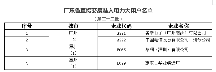 廣東省經(jīng)濟和信息化委印發(fā)第二十二批直接交易準(zhǔn)入電力大用戶名單的通知