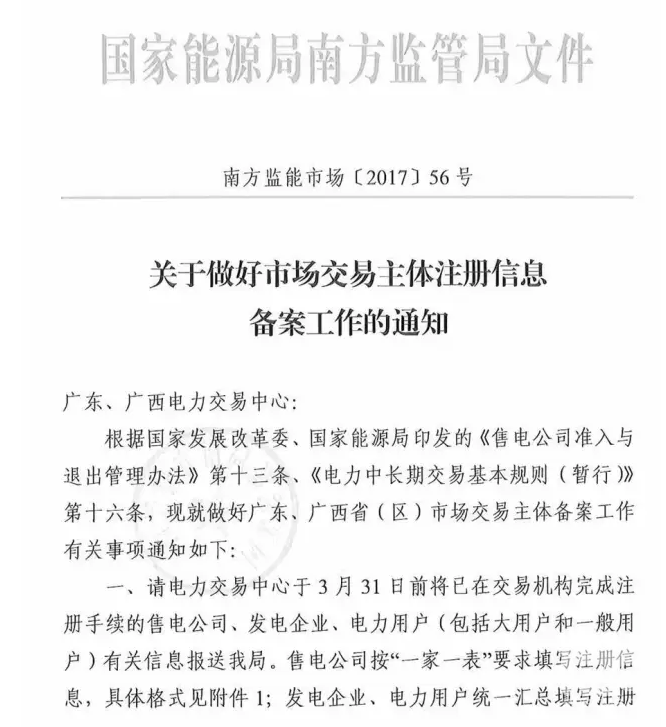 近日,國(guó)家能源局南方監(jiān)管局給交易機(jī)構(gòu)發(fā)文,要求做好市場(chǎng)交易主體備案管理工作(文件附后)。觀茶君以為監(jiān)管機(jī)構(gòu)要搞一個(gè)大動(dòng)作,經(jīng)向了解內(nèi)情的小伙伴請(qǐng)教后,才發(fā)現(xiàn)這只是一個(gè)新引進(jìn)的常規(guī)動(dòng)作。一、兩個(gè)為什么