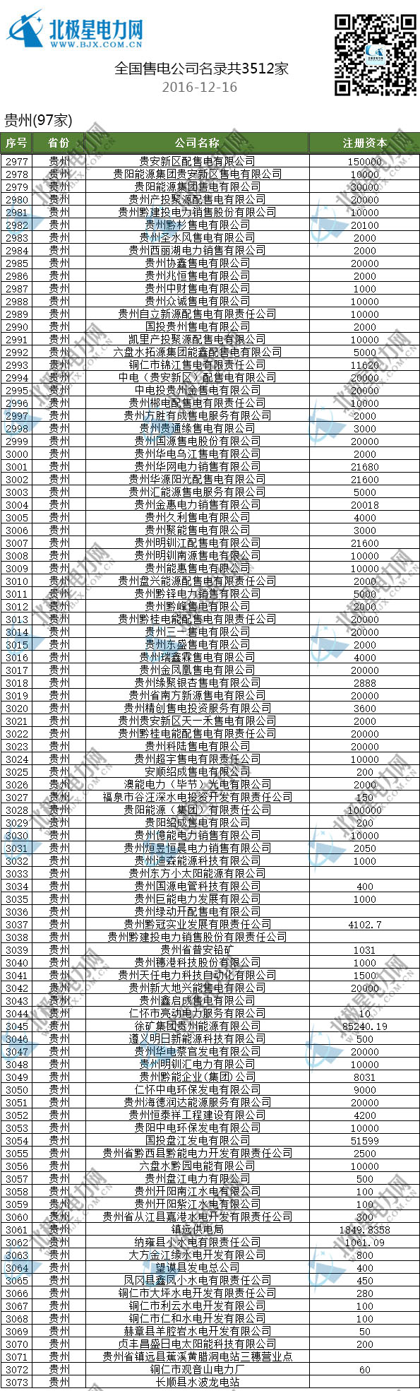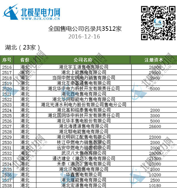 售電公司名單/全國已成立3512家售電公司(截止2016-12-16)