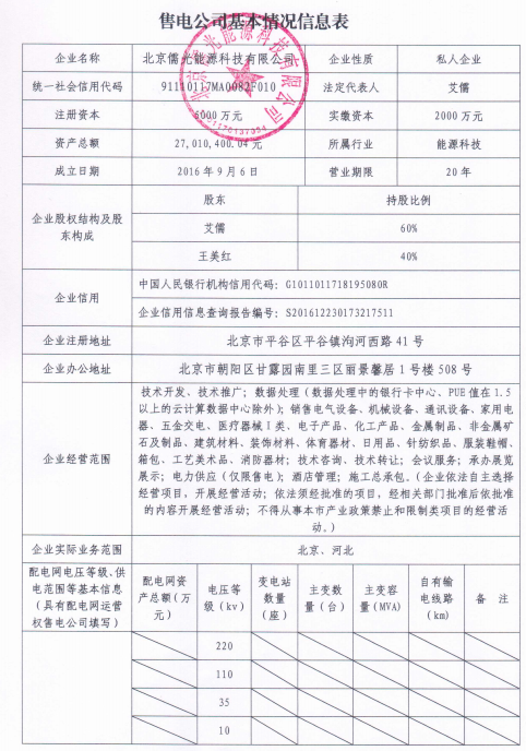 北京電力交易中心關(guān)于公示受理注冊的售電公司相關(guān)信息的公告按照國家發(fā)改委、國家能源局《售電公司準(zhǔn)入與退出管理辦法》的要求,北京電力交易中心受理了下列售電公司的注冊申請,對售電公司提交的市場準(zhǔn)入申請材
