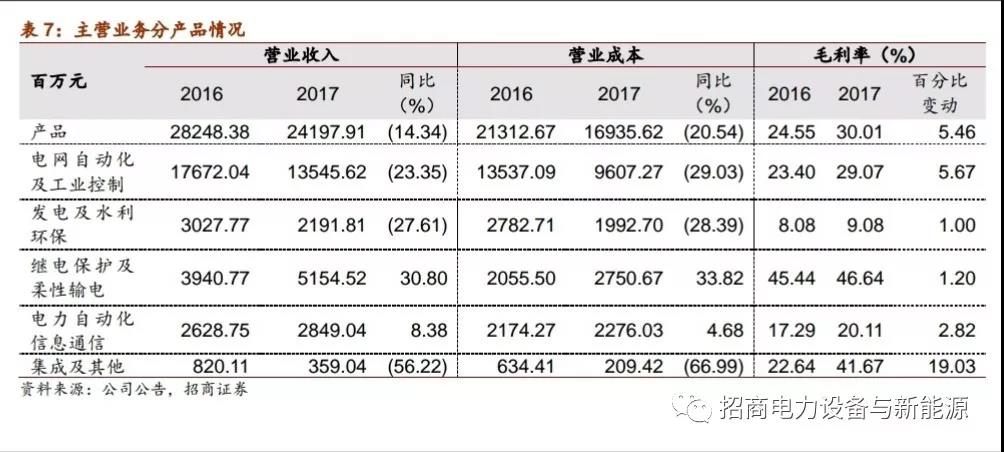 發(fā)電及水利業(yè)務(wù)因市場競爭加劇,收入下降27.61%;集成及其他業(yè)務(wù)中,公司適度控制了盈利能力較弱的新能源集成總包業(yè)務(wù)量(主要是南瑞太陽能業(yè)務(wù)),使收入下降,毛利率上升;電力自動化信息通信業(yè)務(wù)全面向好,營收增長8.38%,毛利率增長2.82個百分點(diǎn),至20%。