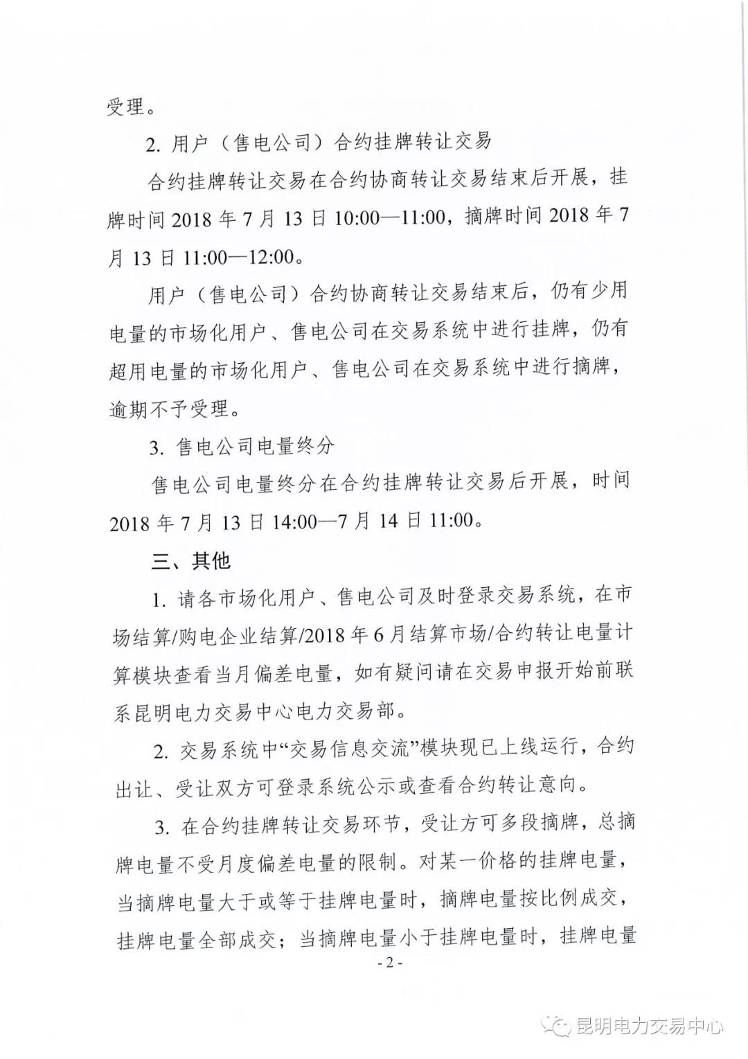 云南關(guān)于開展2018年6月用戶(售電公司)事后合約轉(zhuǎn)讓交易及售電公司電量終分的公告