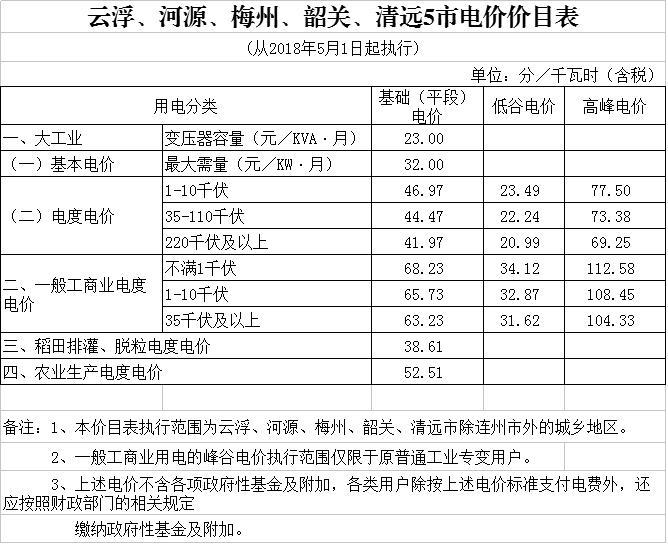 一、全省除深圳市外一般工商業(yè)電度電價每千瓦時統一降低0.58分(含稅,下同);深圳市的一般工商業(yè)電價和大工業(yè)電價已合并為工商業(yè)及其他電價,其各類工商業(yè)及其他電價均每千瓦時統一降低0.12分。各地各用戶調價后的具體電價標準見附件。