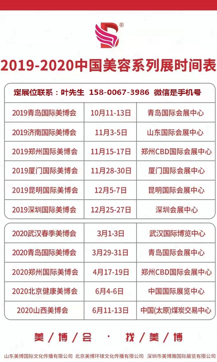 2020北京美博會 2020年北京美博會時間:2019年6月4-6日地點:中國國際展覽中心(朝陽區(qū)北三環(huán)6號)規(guī)模:2館 3館 4館 5館展位預(yù)定: I 5
