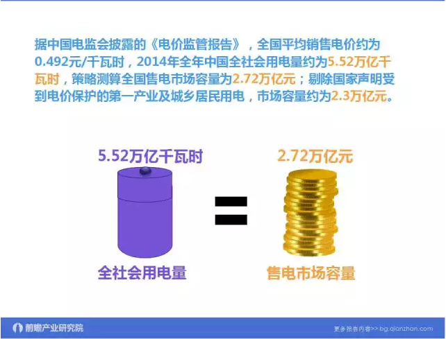 據(jù)媒體報道,電力體制改革6個配套文件即將出臺,售電側(cè)改革試點進(jìn)入倒計時。新電改會帶來很多巨大商機(jī),比如售電制改革,鼓勵社會資本市場進(jìn)入,包括配電領(lǐng)域混合所有制改革。所以從售電公司角度看,更多的關(guān)注電