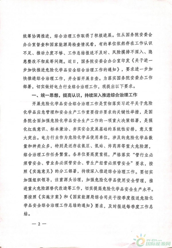 國(guó)家能源局:關(guān)于進(jìn)一步加快推進(jìn)電力行業(yè)危險(xiǎn)化學(xué)品安全綜合治理工作的通知