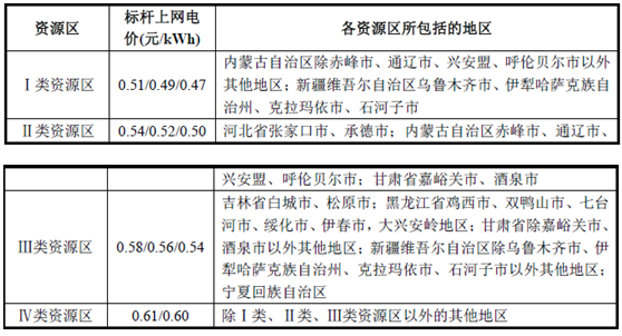 現(xiàn)行陸上風(fēng)電各資源區(qū)標(biāo)桿上網(wǎng)電價(jià)情況如下: