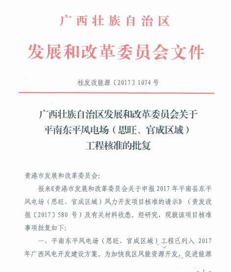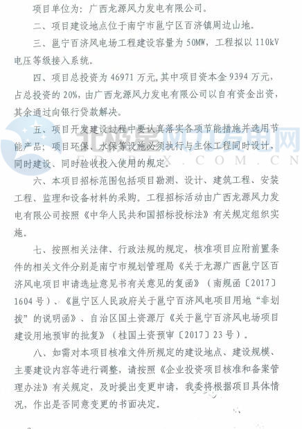 7、廣西發(fā)改委核準龍源邕寧百濟50MW風電場項目(附文件)