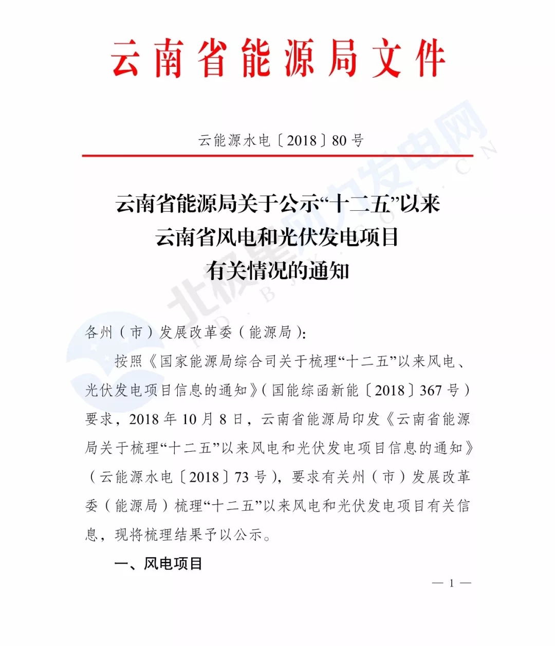 據(jù)《云南省能源局關(guān)于公示“十二五”以來(lái) 云南省風(fēng)電和光伏發(fā)電項(xiàng)目 有關(guān)情況的通知》,曲靖市會(huì)澤縣平箐風(fēng)電場(chǎng)(48MW)已核準(zhǔn)但超過(guò)兩年未開(kāi)工建設(shè),未及時(shí)辦理延期,核準(zhǔn)文件作廢。 大理州賓川縣五頂山風(fēng)電場(chǎng)(49.5)、大理州洱源縣八地 羅風(fēng)電場(chǎng)(49.5)、普洱市寧洱縣硝井風(fēng)電場(chǎng)(50)和保山市昌寧縣黃草山風(fēng)電場(chǎng)(50)納入“十二五”時(shí)期年度建設(shè)方案,但未按要求完成核 準(zhǔn)工作的,按國(guó)能新能〔2016 ) 84 號(hào)文件要求,廢止 4個(gè)項(xiàng)目的年度建設(shè)方案。
