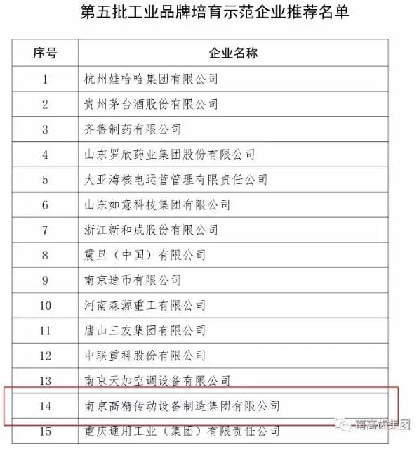 南高齒集團(tuán)入選工信部第五批工業(yè)品牌培育示范企業(yè)