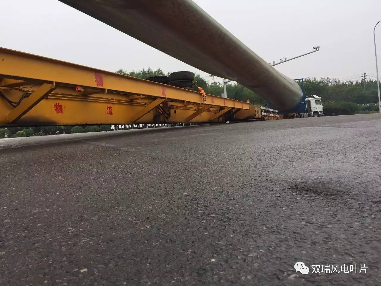 雙瑞風(fēng)電5MW首支葉片成功下線后,于6月13日出發(fā),歷經(jīng)11個(gè)日日夜夜和水路、陸路總計(jì)1700公里的行程,在6月24日凌晨到達(dá)風(fēng)能檢測中心。