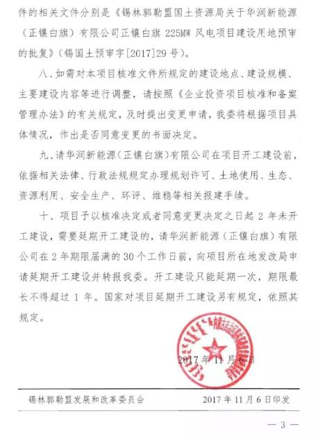 華潤新能源內(nèi)蒙古正鑲白旗225MW風(fēng)電項目獲核準(zhǔn) 建議使用3兆瓦以上風(fēng)電機組