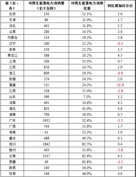2、各省(區(qū)、市)可再生能源電量消納占比,等于各省(區(qū)、市)可再生能源消納量除以本地區(qū)全社會(huì)用電量。