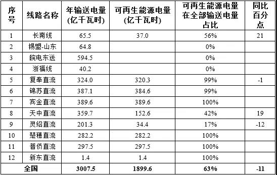 六、特高壓線路輸送可再生能源情況