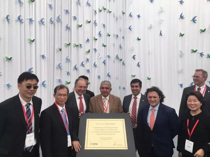 中國駐智利大使館代辦李無旡,國家電投董事、黨組副書記江毅,董事朱鴻杰、劉寶瑛,智利經(jīng)濟(jì)部長何塞˙拉蒙,智利能源部長蘇珊娜˙西門內(nèi)斯出席慶典儀式,并共同為竣工項(xiàng)目剪彩揭牌。
