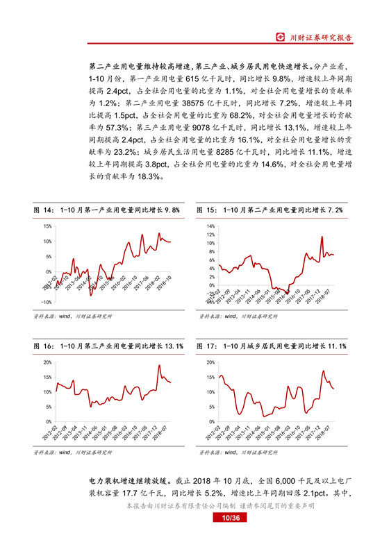 2018 年 1-10 月份,全社會用電量同比增長 8.7%,增速比上年同期提高 2.0pct;全國 6,000 千瓦及以上電廠裝機(jī)容量同比增長 5.2%,增速較上年同期回落2.1pct;全國發(fā)電設(shè)備累計(jì)平均利用小時(shí) 3209 小時(shí),比上年同期增加 100 小時(shí),電力供需失衡繼續(xù)緩解,行業(yè)景氣度持續(xù)提升。
