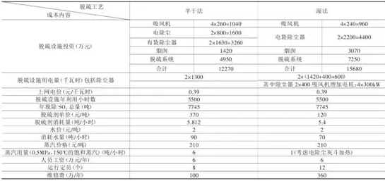 2.3脫硫除塵工藝運(yùn)行成本(表3)